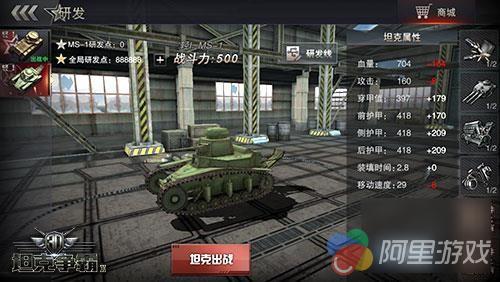 游戏中坦克研发类型同样共有四种,分别为轻坦,中坦,重坦和反坦。四种坦克性能特点各不相同,例如:轻坦速度快、装甲薄,重坦速度慢、装甲厚,且火力强大。各位车长可根据个人的喜好和战斗需求,自由的选择研发坦克的系列和具体类型。