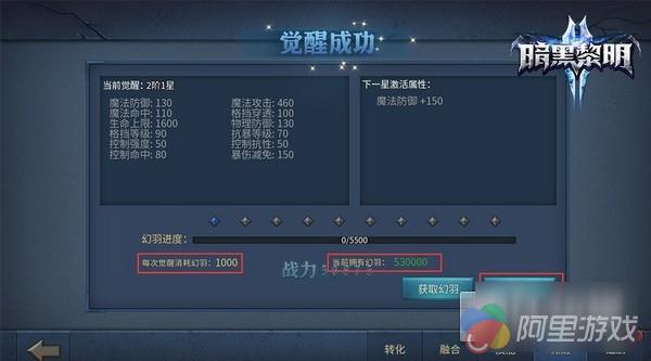 点击觉醒选项卡即可进入觉醒页面,翅膀觉醒所增加的属性并不是加在翅膀上的,而是直接加在角色身上的,换言之不管你佩戴何种翅膀,觉醒效果都是一直存在的。翅膀觉醒所需要的材料为“幻羽”,该道具可以在商城或单人副本活动中获取。