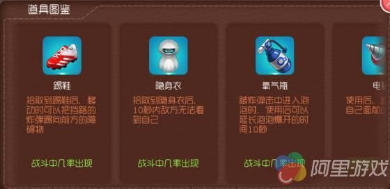 氧气瓶:被炸得集中进入泡泡时,使用后可以延长泡泡爆开的时间10秒,每场战斗只能使用1次;