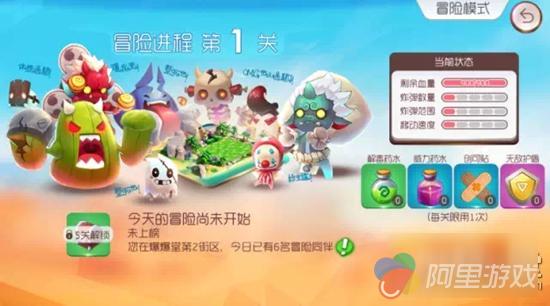 在“冒险模式”中,玩家在进入游戏前,需要购买所需的游戏道具,以保证自己更快的完成 20 个关卡的冒险,获得更多更好的奖励。