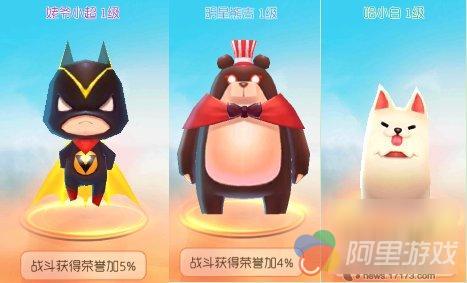 姥爷小超、明星熊吉、哈小白这三只宠物均可以获得大量荣誉加成效果,是竞技场的首选哦。