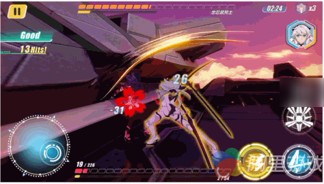 游戏画面可算精细。目前的操作界面类似前作:左侧控制方向,右侧控制攻击。只不过右边的三个按钮变成了分别控制普通攻击、释放技能和闪避。通过按键组合也可以让角色使出不同技能,有着一定的可玩性。每次可选择3种角色进行组队,并且好友角色也会参与战斗。值得一提的一点是战斗有着克制系统。游戏中的角色和敌都有机械、异能和人物三种属性之分,彼此克制。