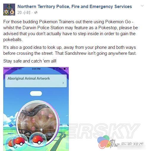 澳大利亚警务局在Facebook上贴出告示警告虽然达尔文警察局在游戏里被标记成为精灵商店,但玩家们并不需要进入建筑来获取道具。