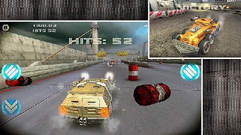 《暴力飞车 Battle Riders》有些类似电影死亡飞车,玩家将驾驶搭载武器的赛车,干掉其他对手,赢得胜利。游戏内容比较丰富,有三种场景,九个赛道,提供了五种游戏模式,玩家需要不断胜利来获取赛车的更高升级。每辆赛车可搭载两个武器,总共有五种不同用途的武器来供玩家选择。