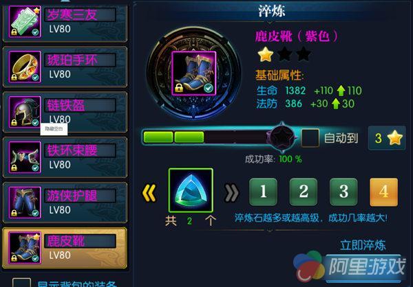b)淬炼有一定的成功率,根据放入的数量和品质来决定成功率,最高可达100%;