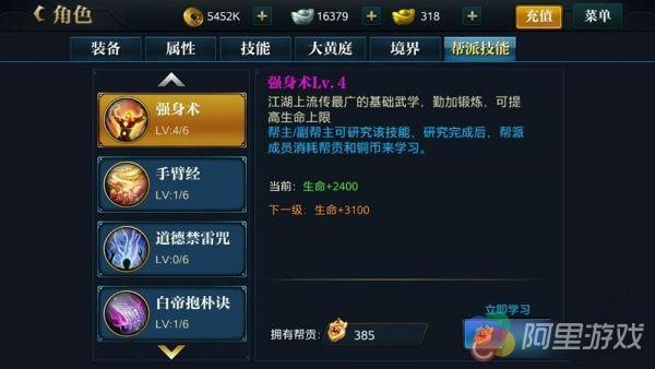 帮派贡献可以在帮派商店购买需要的材料物品,也可以用来提升自身的帮派技能可以获得的方式6个