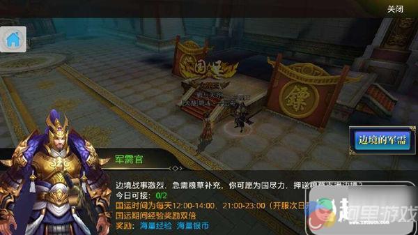 从第二天开始做任务就要留意了,每天的12-14,21-23点运镖是2倍刺探是1.5倍经验。高V前几天最好全红毕竟前面几天等级高优势还是很大的,低V的话可以橙色实在运气差就紫色吧!换镖令可以在国家页面国战里面兑换,100贡献一个令还是比较划算的。高V就别换了留着升级国家技能吧!