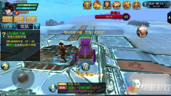 3.接受运镖任务后,玩家会进入镖车中开始向边境大将前进,这个时候,玩家在车上会获得一个技能加速和一个下车技能,当玩家遇到阻拦的时候,玩家可以通过下车来解决对手,这个不必多说,重点要介绍的是这个加速: