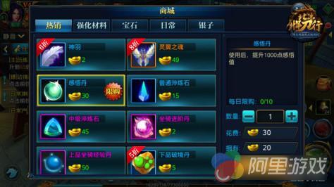 各位玩单机的小伙伴们,你们还在忽略商城这个选项吗?《北凉悍刀行》中的感悟值可以靠感悟丹来获得,一颗1000感悟值完爆在线礼包。商城中的感悟丹30金子一个,每天限购10个,而金子获取在《北凉悍刀行》中非常容易。所以每天300金子不只是对土豪,作为普通玩家的你也可以每天来商城消费,秒升境界不啰嗦!