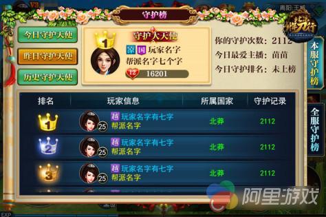 只给主播送花是不是有点儿乏味?新资料片更新后,在《北凉悍刀行》游戏中可以给主播送礼物啦!主播每日收到礼物的数量会被记录下来,并更新至排行榜,一次性赠送99、999个棒棒糖还可以附带留言,写下你先对主播说的话。除了主播的排行榜,还会有专属玩家的守护榜,记录每日送礼物数量,让你成为全服羡慕的守护大天使。