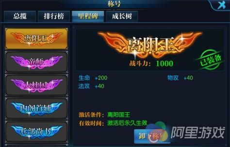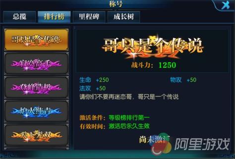 系统介绍:该系统主要通过玩家解锁各种样的称号,并将称号使用,标注在角色的头顶,以证明角色目前的身份与地位,并且可以增加一定量的属性。