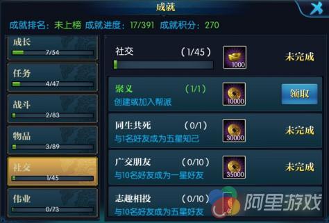 社交成就:社交成就包含和好友的友好度,送礼物的数量,自身魅力,和收到获得的鲜花(奖励银元宝),国家官职大小