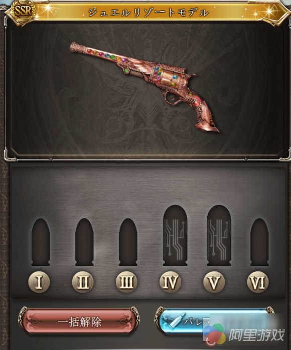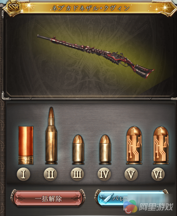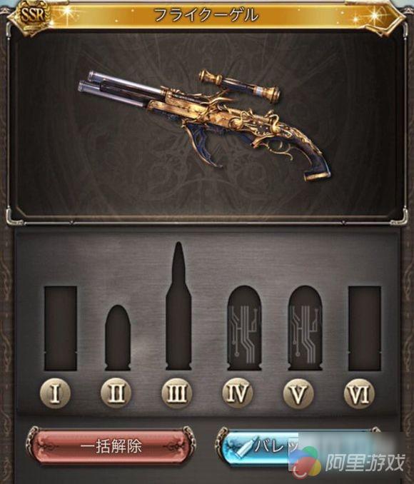 首先推荐英雄武器ネブカドネザル(死神铳)。SR3个,SSR4个,再诞5个,转属性6个。是最合适铳手的武器。注意铳名字变了的话子弹不能用同一套,所以做到最后再填子弹。最重要的是转属性之后奥义附加20%奥义槽以及reload!大幅提升主角的行动率。无氪金入手可能,还可以转各种属性。弹槽如下