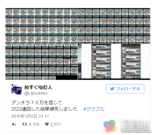 但“宏蓝”庞大的用户基数却引来了祸害,花费大量金钱而不得回报的玩家积蓄的不满终于在今年年初爆发,事件起因是今年新年期间的“十二生肖”活动,游戏声优之一田中理惠第一次十连抽就抽中了掉率极低的生肖角色,田中本人也常在社交网络公开游玩游戏时抽到的稀有角色。而在 NicoNico 的一场直播中,一位玩家共点了 2522 次十连抽,花掉了 75 万 6000 日元,结果还是一无所获。