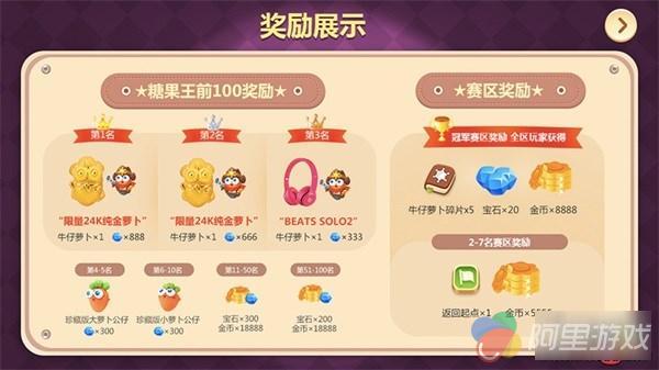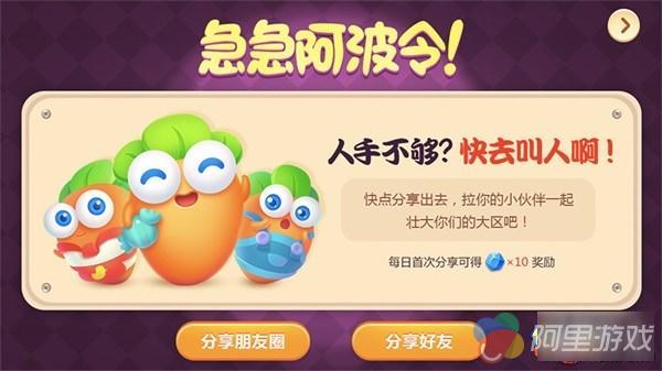 各位萝卜丝在参与城市争霸赛的过程中,不但可以体会到浓浓的团队荣誉感,更有海量奖励等你来拿。玩家只要每日参与糖果赛玩法,贡献自己得力量,当大区的总贡献值达到一定数值时,即可获得钻石、角色碎片、体力值等相关道具,让你的萝卜生涯更上一层楼,同时还可以帮助自己所在的大区提高分数,最终夺冠闪耀整个萝卜世界。如此有趣的城市对抗赛,还可以通过分享功能来分享给朋友一起战斗,体会并肩作战的奇妙乐趣。