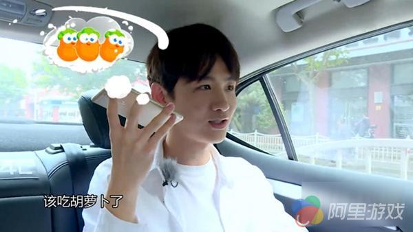 在节目开始阶段明星集结时,豪院长打电话给小白(白敬亭)时,就谈到让小白该吃萝卜了,萝卜阿波的动态动画就在屏幕上方跳动而出,很有幽默趣味感。