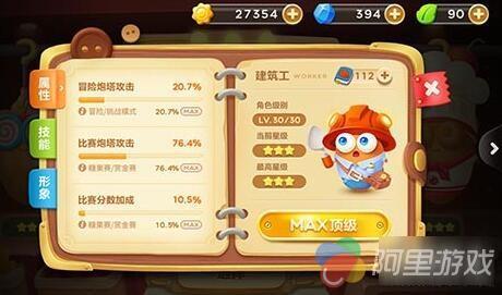 在糖果赛的赛场上,建筑工人阿波可是有着双重的加成效果哦。首先,建筑工对比赛中的炮塔有76.4%的攻击加成;其次,对于比赛分数,建筑工也有10.5%的加成呢!建筑工的双重加成,是不是让大家在战斗更加畅快呢?
