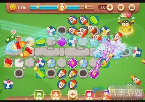 3、下面和上面的房子打掉后,共可以获得8个火箭,不用去升级,优先补充2个冰冻星。