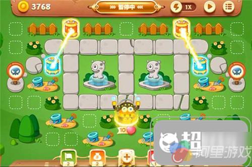 1、开局如图放上2组正负电塔,并控制他们迅速把中间2个水池打掉。