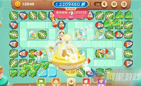 战斗中期的重点是4号UFO,需要尽量拖延时间,最好让UFO在一波内被解决掉。之前的阵型攻击力很强,第27波小怪很快就被干掉,无法拖延时间。所以,阿波要改换阵型,将8座雪球减至6座,风扇全部换成鱼刺,增加导弹的数量至11座,再利用【返回起点】和【与牛共舞】拖住怪物。击落UFO后,再根据小怪的分散程度释放地雷或核弹清光怪物。如此,便能进入28波!