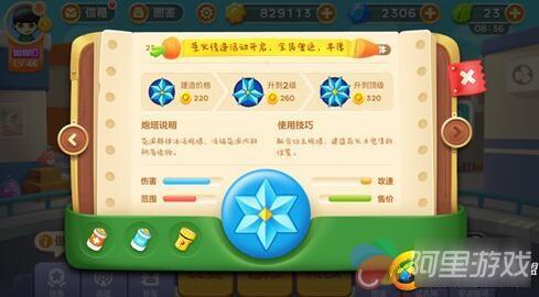 糖果赛高分技巧中有强调速清道具,作为官方指出的唯一一条高分技巧,10秒内道具全清的话分数极为可观!这次阿波推荐3座炮塔:太阳花、章鱼和负电塔。首选章鱼,负电塔次之,太阳花最次。但这三个炮塔也算是各有特点。章鱼攻击力强大,负电塔范围大,太阳花持续伤害强。