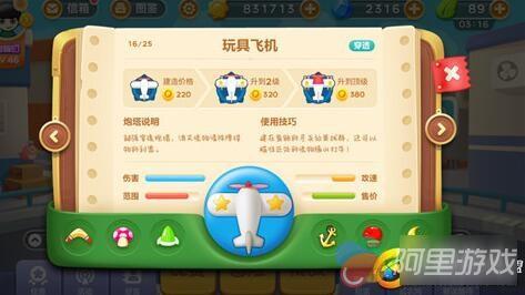 UFO分数很高,所以萝卜丝就需要坚持等到UFO出现。这个过程中,穿透炮塔功不可没。AOE伤害巨高的风扇和范围大伤害高的玩具飞机是阿波要推荐的。风扇的扇叶攻击在2倍速下极为恐怖,大扇叶刮过小扇叶持续伤害;玩具飞机的射线距离超远,不仅能够对怪物造成巨额伤害,打起奖励的宝物来也很给力。穿透炮塔最佳的布置地点是直线道路的两端,给它们这样的位置,一定会将萝卜丝送到UFO处赢得高分!