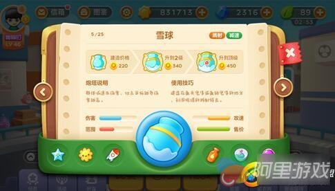 减速炮塔首要任务是减速怪物保护糖果车,但是有些炮塔具有其他特点。雪球,攻击怪物越多伤害越高,对付分裂型的怪物有奇效;月亮减速极佳且攻速极高,能够不断刷新怪物身上的减速效果。二者各有千秋,萝卜丝根据自己熟练程度选择就好。