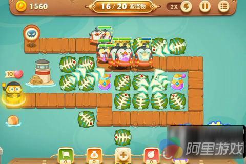 1.上面就是这关的地形,很简单不交错的地图,但是值得注意的是这关没有减速炮塔可以选择。所以鱼刺就是这关的关键点了。