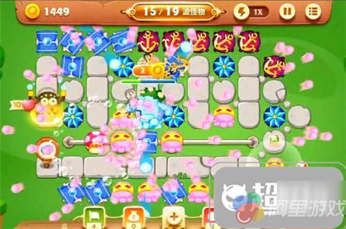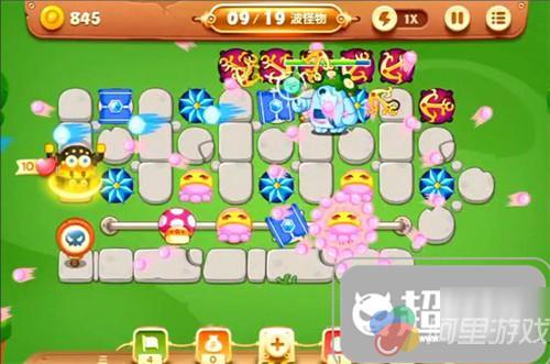 1、开局左侧下方布局一个蘑菇和章鱼,升级到最高,利用其攻击范围可以顺带清理周围的障碍。