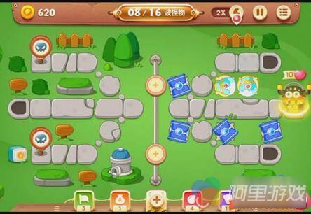 1、首先优先在右边放置2个冰锥,攻击怪物的同时,清理场景道具。