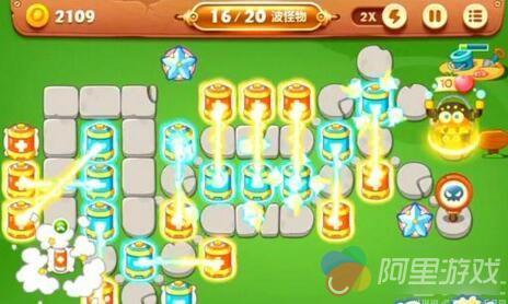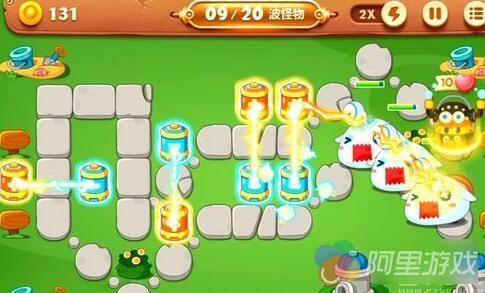 2、随着波数的增加,布局更多的负电塔和正电塔的配合,不过优先搭建的是负电塔,主要是其伤害范围可以顺便将周围的障碍清除掉