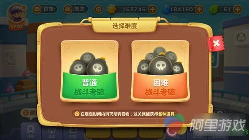 可选择[普通]和[困难]两种模式,难度越大,奖励越多,富贵险中求嘛,进入关卡后,地图和炮塔是随机发放的,在规定时间内消灭所有怪物,有一只怪物血特别厚,我们叫他铁皮怪吧,最好先击杀他,擒贼先擒王。