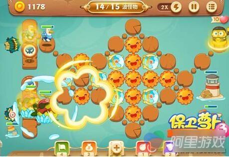 4、最后在中间无脑堆太阳花基本就过了。以上就是保卫萝卜3码头第31关金萝卜的获得方法详细讲解。