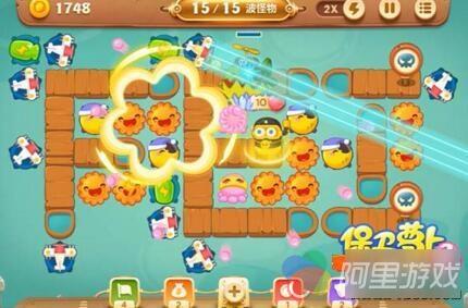 3、在还没清掉的道具周围适当补充一些炮塔,之后在几个折角处补充一些飞机就可以了,本关的难点主要是路比较短,场面比较混乱,中期比较容易漏怪,建议操作来不及的话,最好先暂停,建好炮塔之后再继续。
