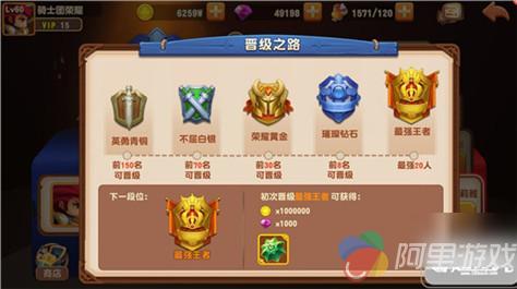 6、竞技场的排名分段位,从低到高依次是青铜组,白银组,黄金组,钻石组和最强王者组,每个组别前几名有参加晋级赛的资格,晋级赛对手为高组别的靠后玩家,如果战斗胜利,则晋级成功。