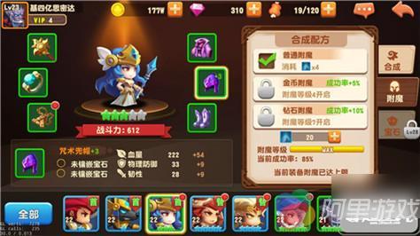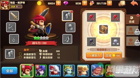 需要集齐4个材料和一个图纸才能合成高阶装备,材料和图纸本身附带属性,只要放入装备的合成位中,就会使装备获得部分属性。