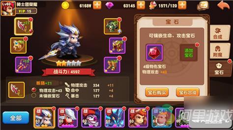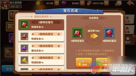 3颗同种类低等级宝石可以合成高等级宝石,宝石合成需要消耗少量金币,宝石等级提升后,属性大幅提升。