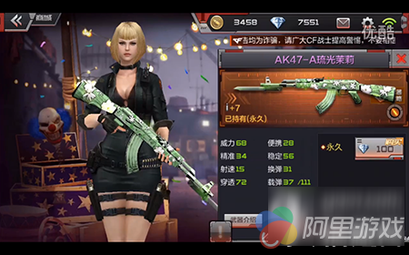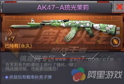 属性整体有现提。外观效果华丽,可以说是AK47茉莉升级版。