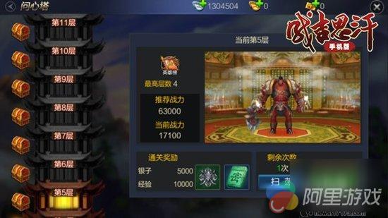 问心塔为单人闯关模式,每通关一层都会获得相应奖励,每层一个BOSS,层数越高怪物能力越强。