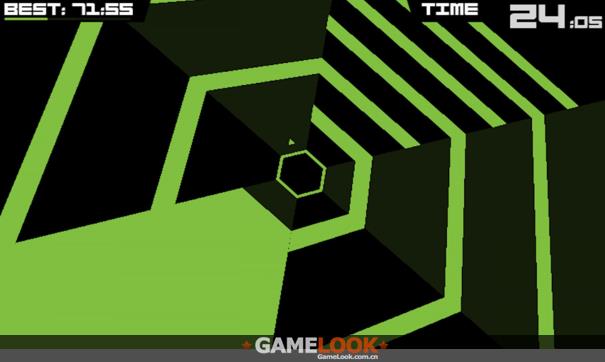 如笔者开篇所说,优秀的游戏设计应该在做到高难度的同时又不让玩家们觉得沮丧,而该游戏通过紧张刺激而具有吸引力的玩法精准实现了以上的要求,游戏的基本元素几乎不能做的再少了:你操作一个三角形在不断变化的形状中心移动,通常是四边形或者五边形,目的是在快速迎面而来的墙壁缝隙间穿过,这些墙移动的速度会越来越快,直到你的三角形撞到墙上结束游戏。