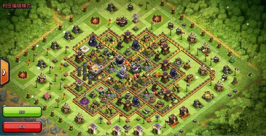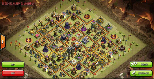 这个阵型在猪头之前10本菊花阵上反复调教出来的。特点是大本尽量内置,大鸟和地狱分开,女王和城堡合理分布等等。中间的格子也比较多,避免被新的女巫流推平。