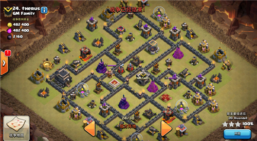 那么等女王前戏基本完成,石法部队配合跳墙,进去废掉另外一组炸弹。最后野猪收尾。这样就可以三星啦。当然考虑到女王等级太低,时间不够用的话必须要多带几个弓箭mm