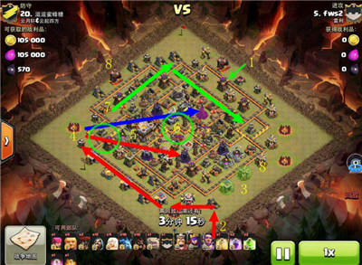 8,最后4点位置配合2个气球,一个加速速度清理最后的防御,并辅助打扫战场。