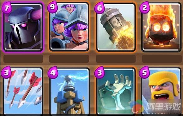 如果敌人使用的是高费卡组,将1个火枪手跟在坦克后面,另外2个火枪手作为诱饵。坦克+1个火枪手作为主推路线。