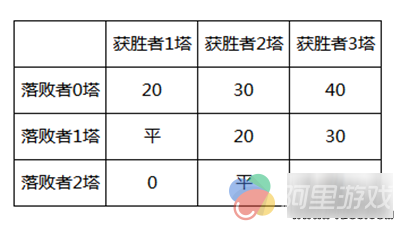 下面表格列出 获胜者/落败者 摧毁塔的数目所 获取/损失 的杯数