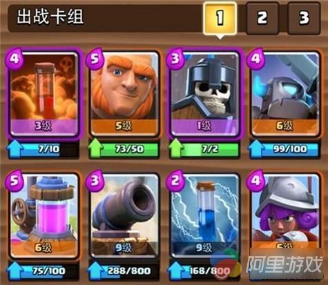 此外小皮卡这卡也十分好用,无论是解矿工还是野猪甚至是血厚的皇家巨人效果都十分显著,在接完后还能配合其他卡组织一波进攻。因此如果有条件的话,推荐大家在部落多多求捐这卡。