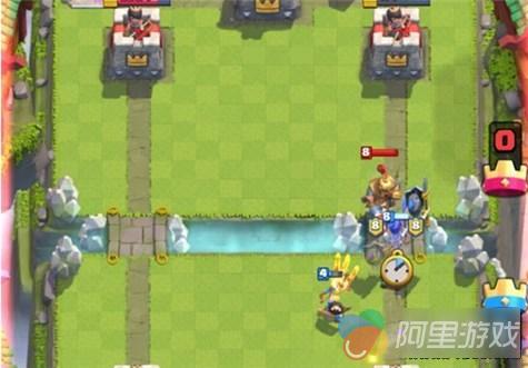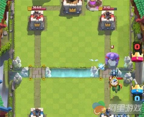 进攻方式:攒取费用,巨石投手走一路,利用王子冲锋的效果近塔造成伤害,投手可以解决掉那些从前扰乱王子的烦人杂鱼兵,大闪电、小闪电配合进攻以及清理采集器,飞龙主要针对苍蝇以及充当肉盾。