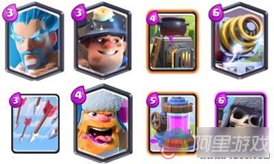 2.箭雨换了小电,升级了10级小电效果并不理想,而且越往高,预判法术秒解苍蝇要求就越高,同时箭雨能够解公主保证矿工可以空出来去切其他后排比如火枪。