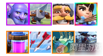 万箭齐发:一张主要用来清亡灵的卡。根据对方卡牌所拥有的情况,那么这张卡可以考虑用来清公主或者成群的小单位卡。