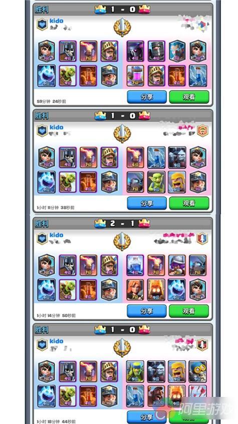 第十一场:对手滚木猪,我的天哪好可怕。对手的滚木针对我的公主,顺带蹭血。这里要提醒大家的是,面对烈焰精灵+皮卡的组合,你需要丢出寒冰精灵就好,一般一个寒冰精灵是可以换掉两个烈焰精灵之后在用骷髅守卫防守的话,会很轻松。说实话,这把我赢的还算悬,第一次矿工被抓住了。之后对手有采集器和跳猪的玩法均费比我低,这些帮助他消耗我比我消耗他更厉害。让我整场的防守还是有点遭不住,最后在双倍时间里,我下出了王子+飞桶的组合,对手由于轮换的问题,导致自己手里第一时间下出小皮卡(估计是轮换的太快在读秒),然后被我的王子成功冲击到了护卫塔一下,结果就是我的胜利,算是抓住机会的一波胜利。